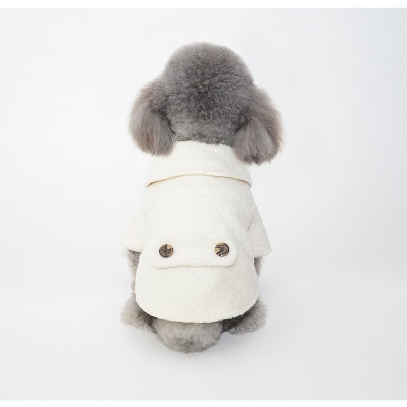 ワンちゃんとのお出掛けに最適なちょっぴり上品でホーンボタンがかわいいコートです。