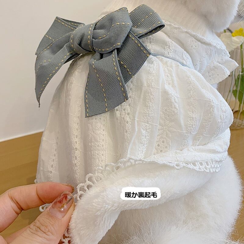 犬服 ファッション 小型犬服専門店 PUTI DOG 小型犬服 ドッグウェア 犬服 秋冬 子犬 超小型犬 ブラウス レース フリルネック 大きめ リボン 裏起毛 かわいい 室内着 お出掛け ドッグラン | 犬服 ファッション 小型犬服専門店 PUTI DOG