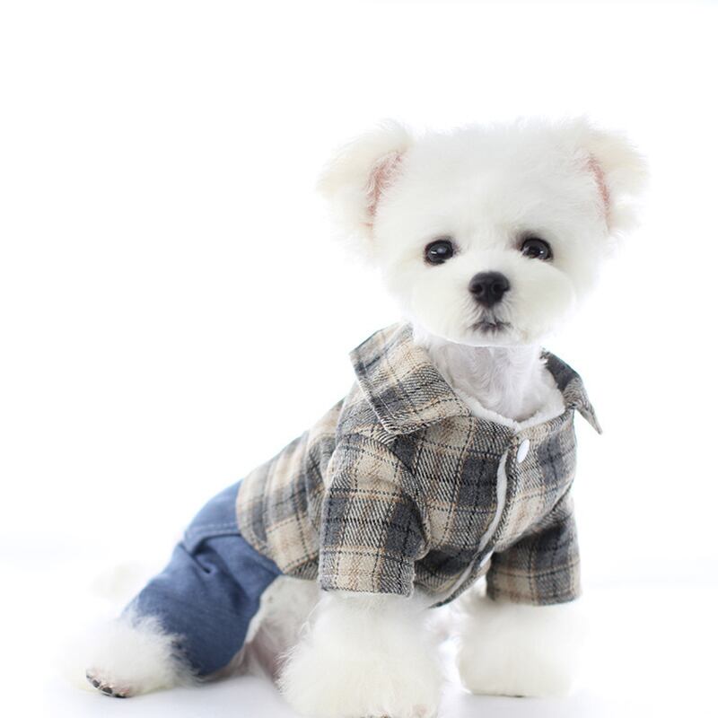 犬服 ファッション 小型犬服専門店 PUTI DOG小型犬服 ドッグウェア 犬服 秋冬 子犬 超小型犬 アウター チェック柄 レトロ 裏起毛 パンツ かわいい おしゃれ お出掛け ドッグラン | 犬服 ファッション 小型犬服専門店 PUTI DOG